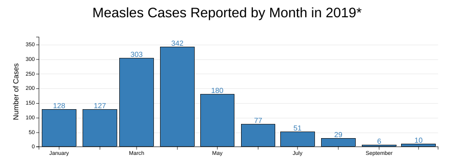 There was a point earlier this year when the U.S. was on pace for almost 2,400 cases of measles. The various outbreaks causing the spike have petered out since then, and after 342 cases in April alone the country saw only six cases in September and ten cases in October.